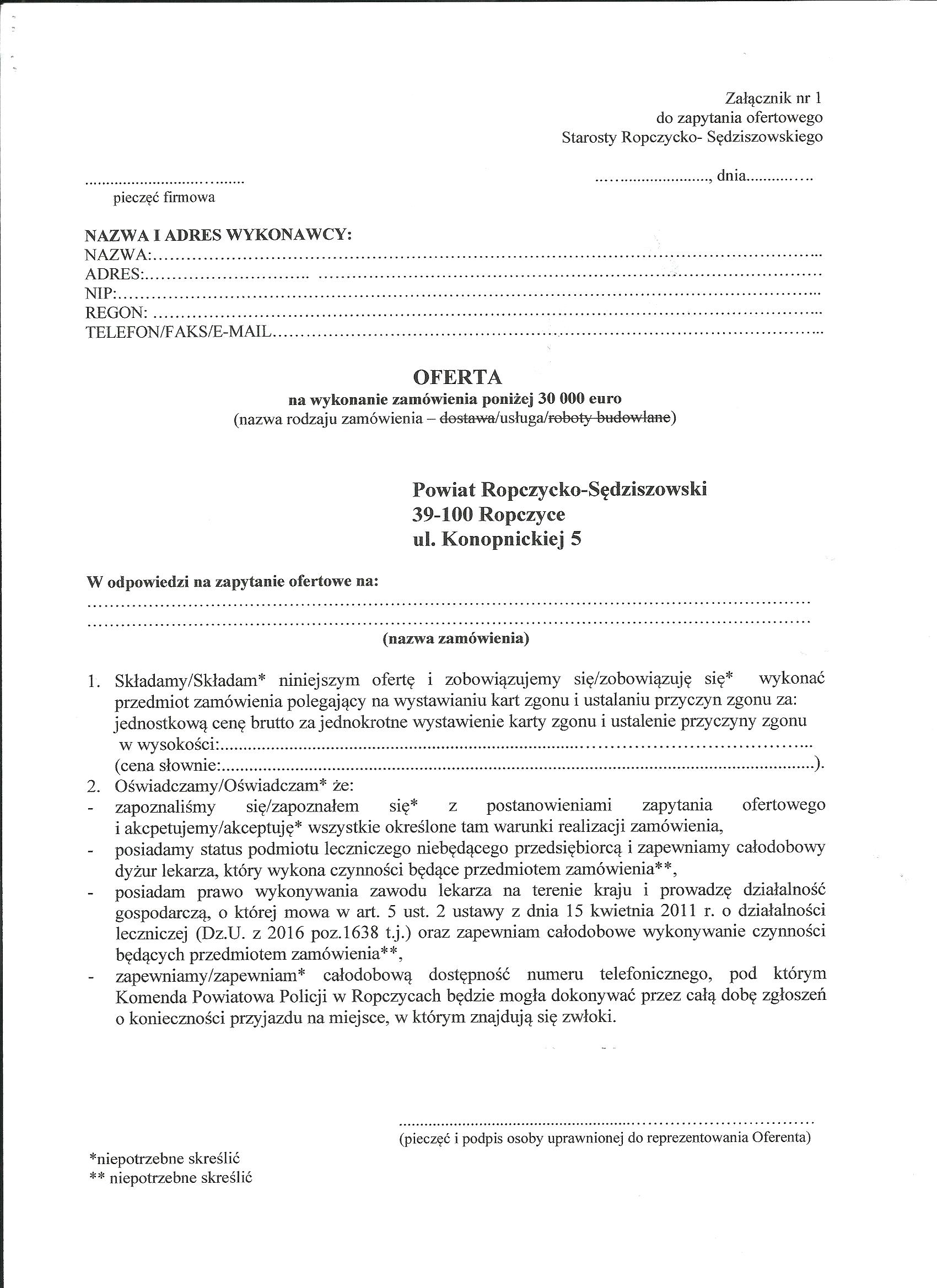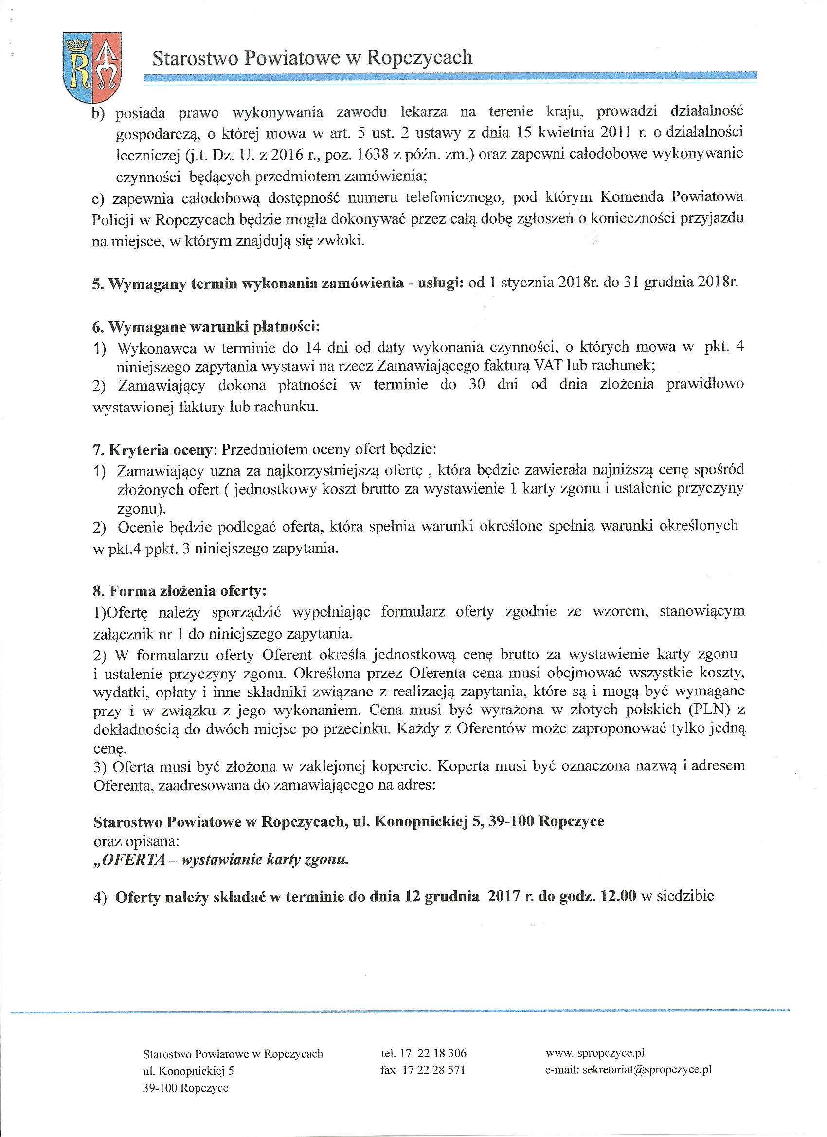 Zapytanie ofertowe: Świadczenie usługi stwierdzenia zgonu ...