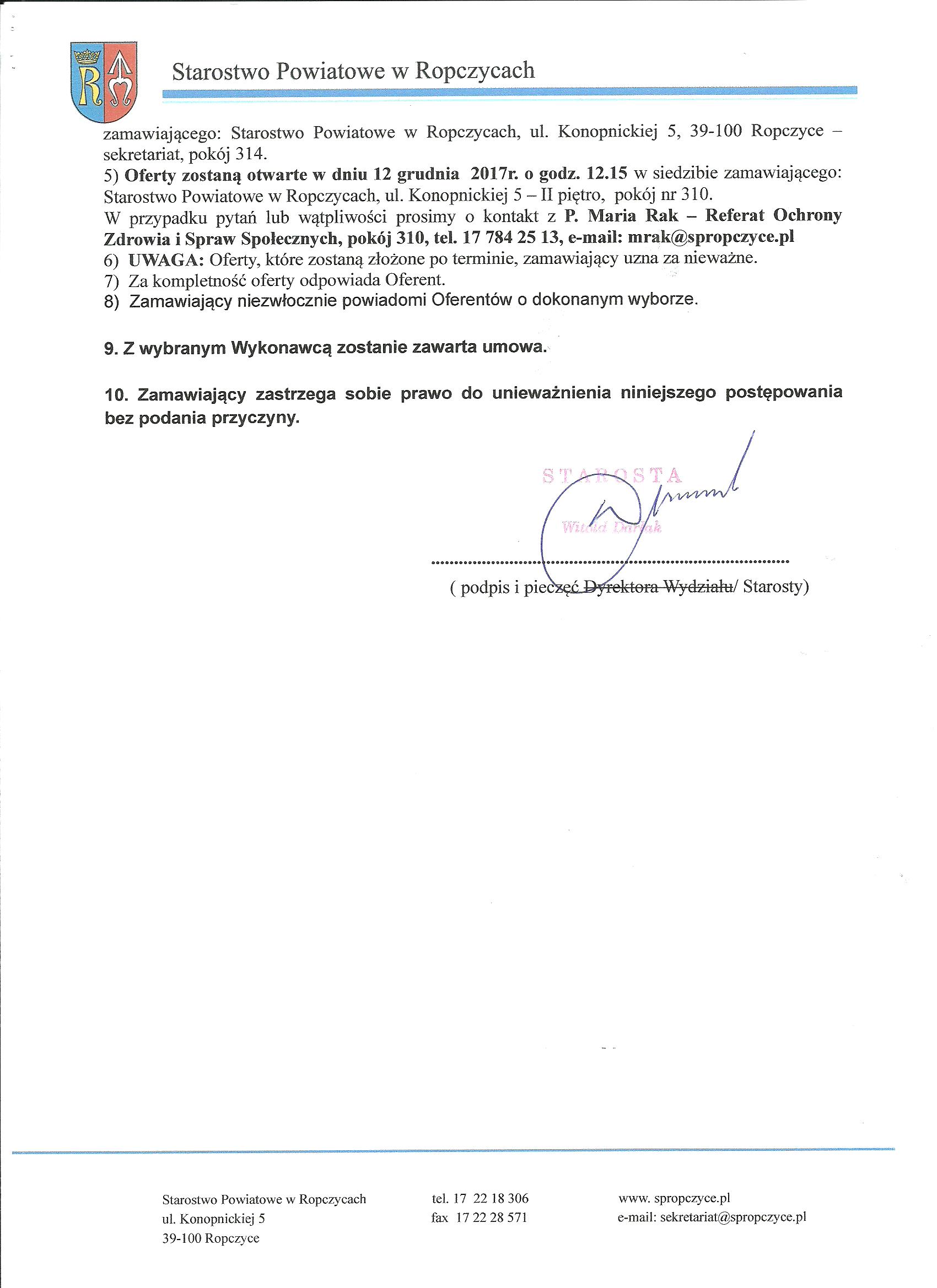 Odzew Starosty Powiatu Ropczycko-Sędziszowskiego na list ...