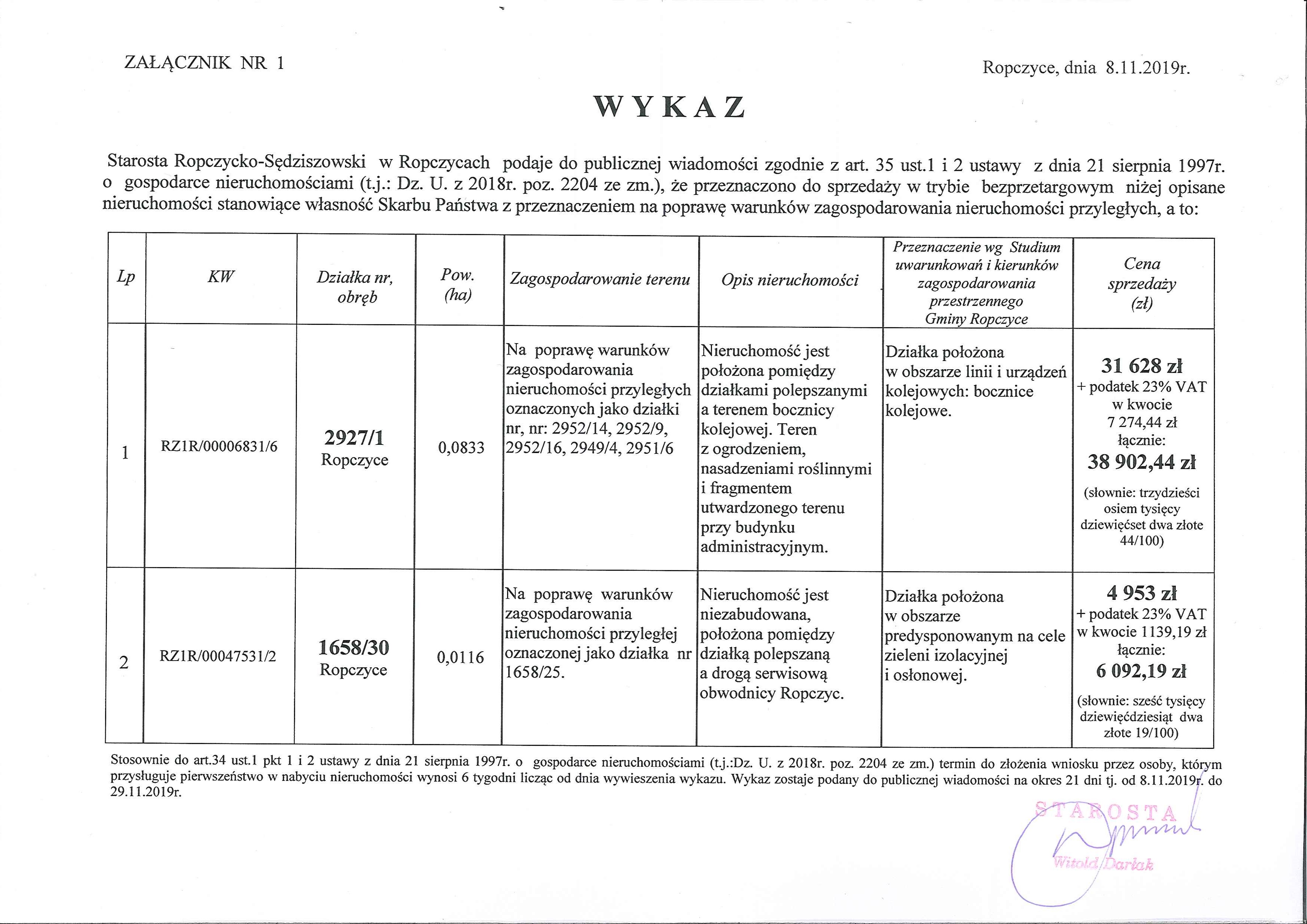 Odzew Starosty Powiatu Ropczycko-Sędziszowskiego na list ...